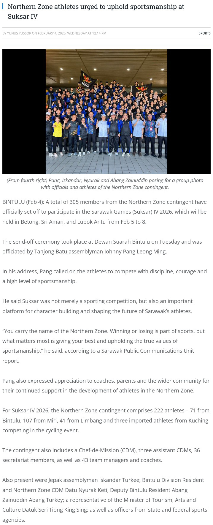 Source of News: https://www.theborneopost.com/2026/02/04/northern-zone-athletes-urged-to-uphold-sportsmanship-at-suksar-iv/