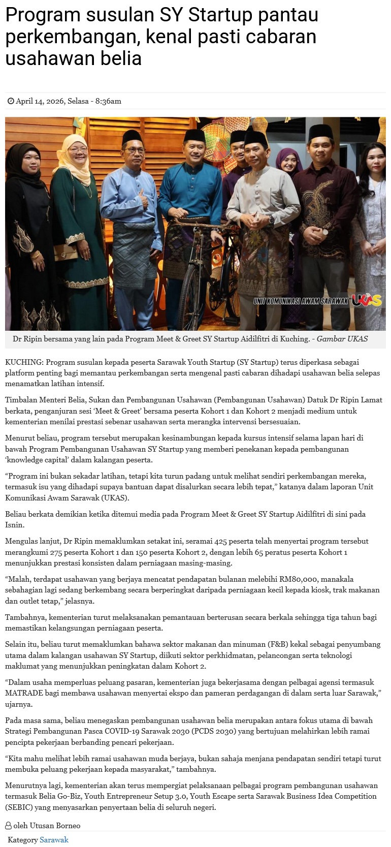 Source of News: https://www.utusanborneo.com.my/2026/04/14/program-susulan-sy-startup-pantau-perkembangan-kenal-pasti-cabaran-usahawan-belia