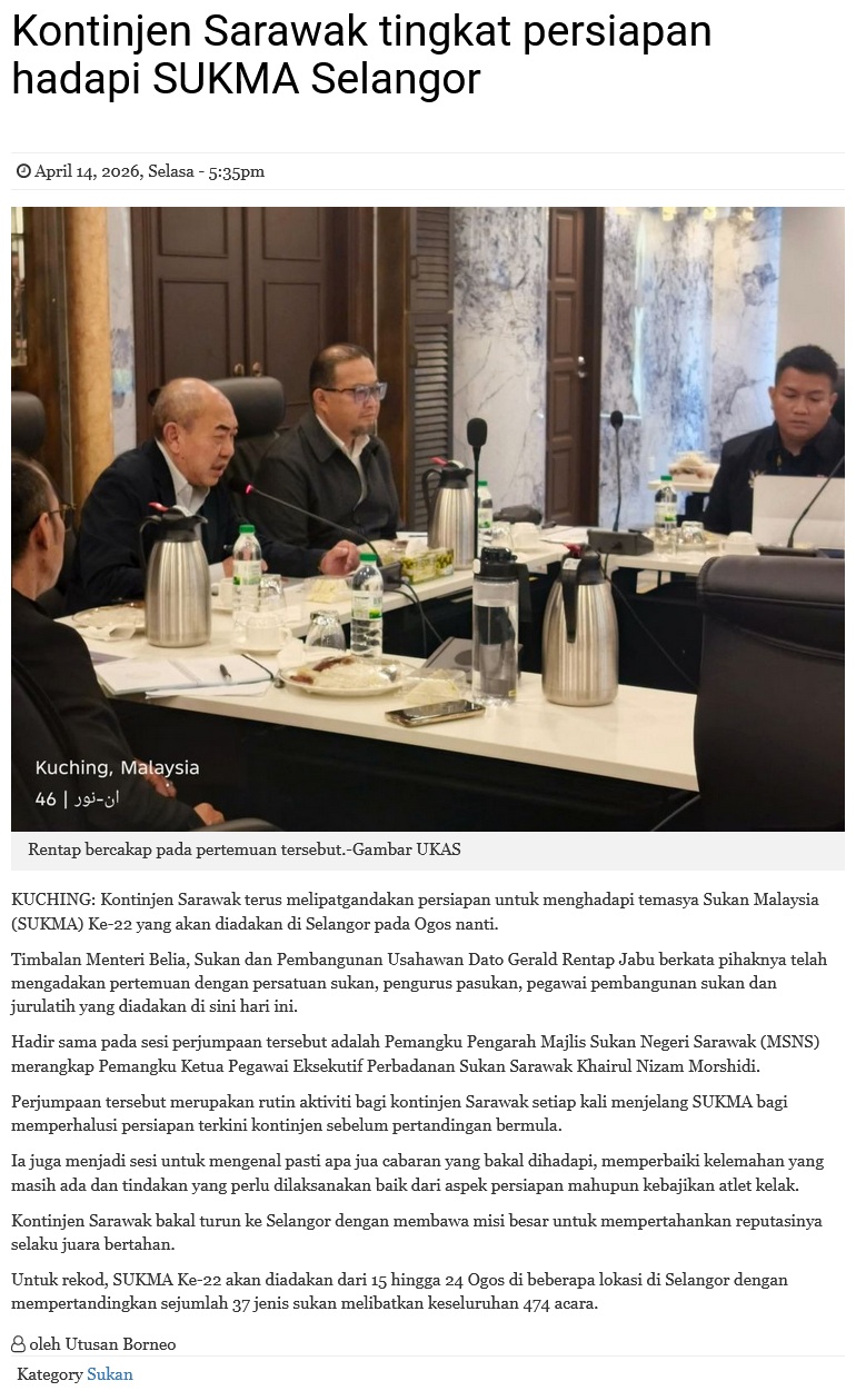 Source of News: https://www.utusanborneo.com.my/2026/04/14/kontinjen-sarawak-tingkat-persiapan-hadapi-sukma-selangor