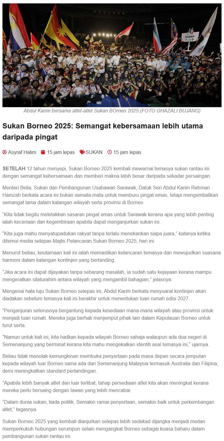 Source of News: https://suarasarawak.my/sukan-borneo-2025-semangat-kebersamaan-lebih-utama-daripada-pingat/