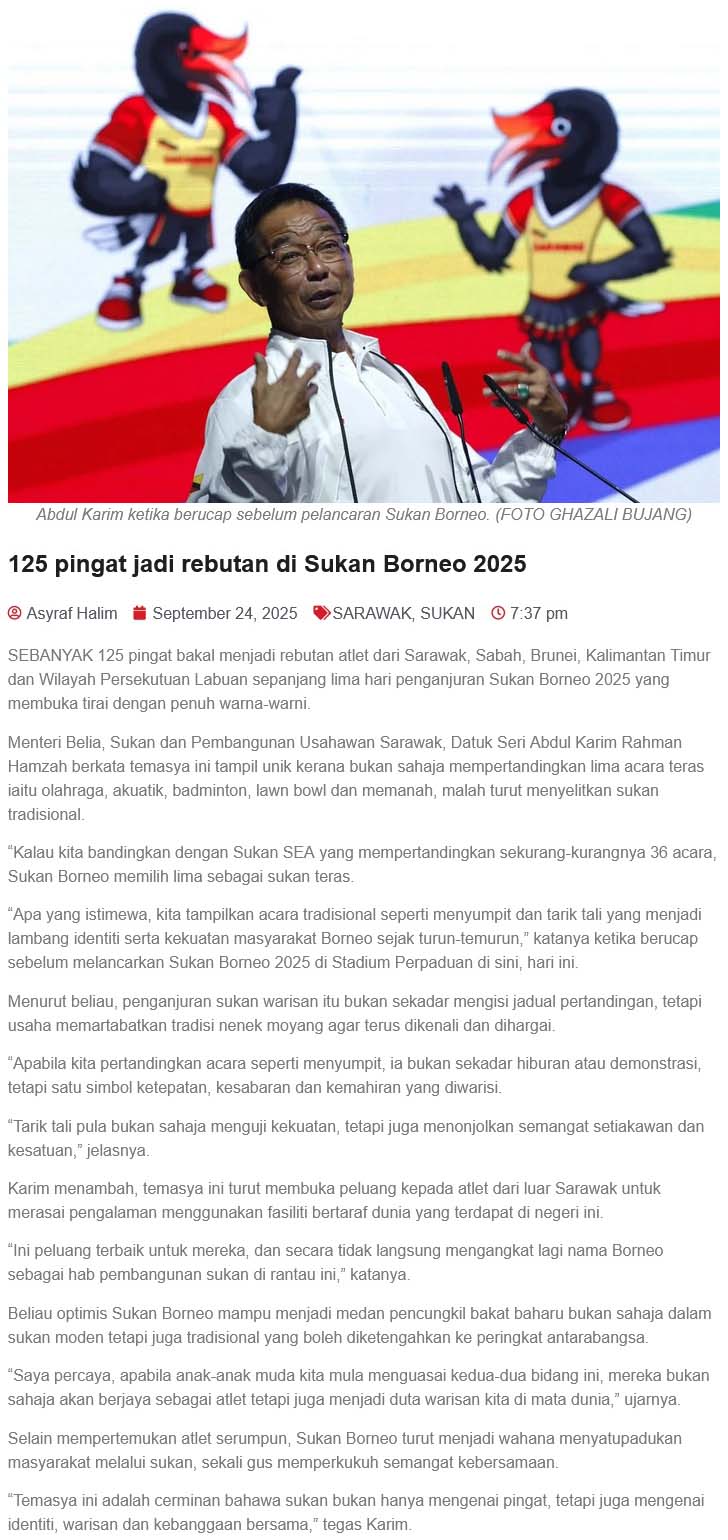 Source of News: https://suarasarawak.my/125-pingat-jadi-rebutan-di-sukan-borneo-2025/