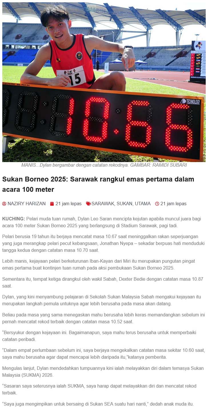 Source of News: https://suarasarawak.my/sukan-borneo-2025-sarawak-rangkul-emas-pertama-dalam-acara-100-meter/