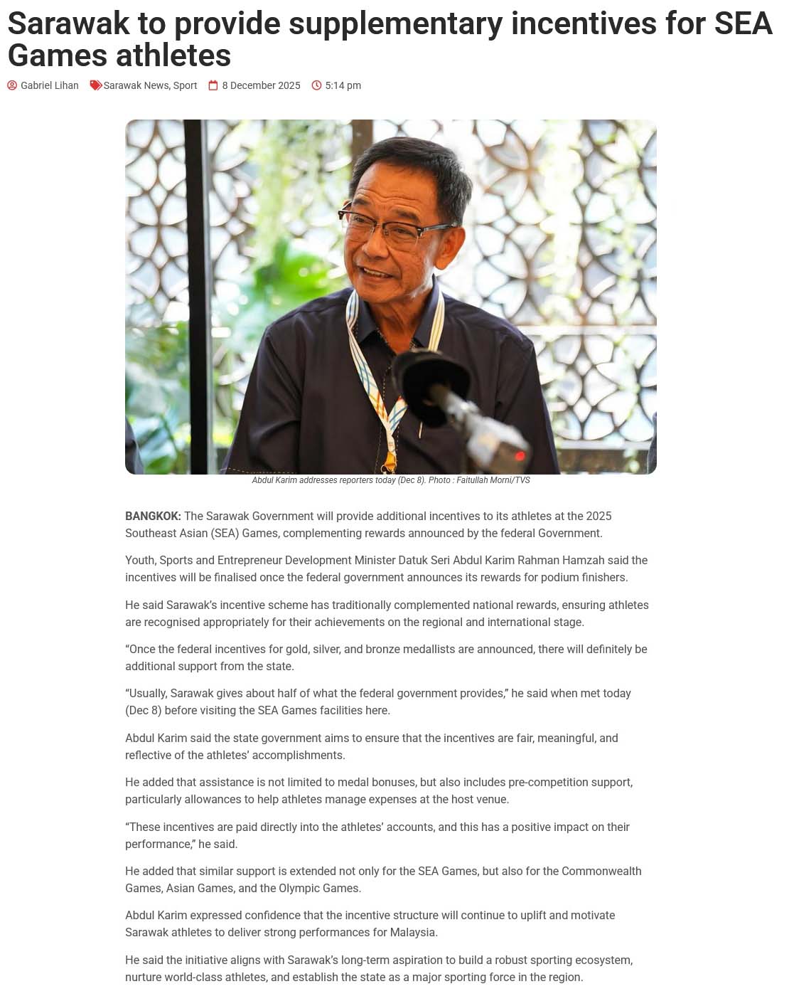 Source of News: https://www.sarawaktribune.com/sarawak-to-provide-supplementary-incentives-for-sea-games-athletes/