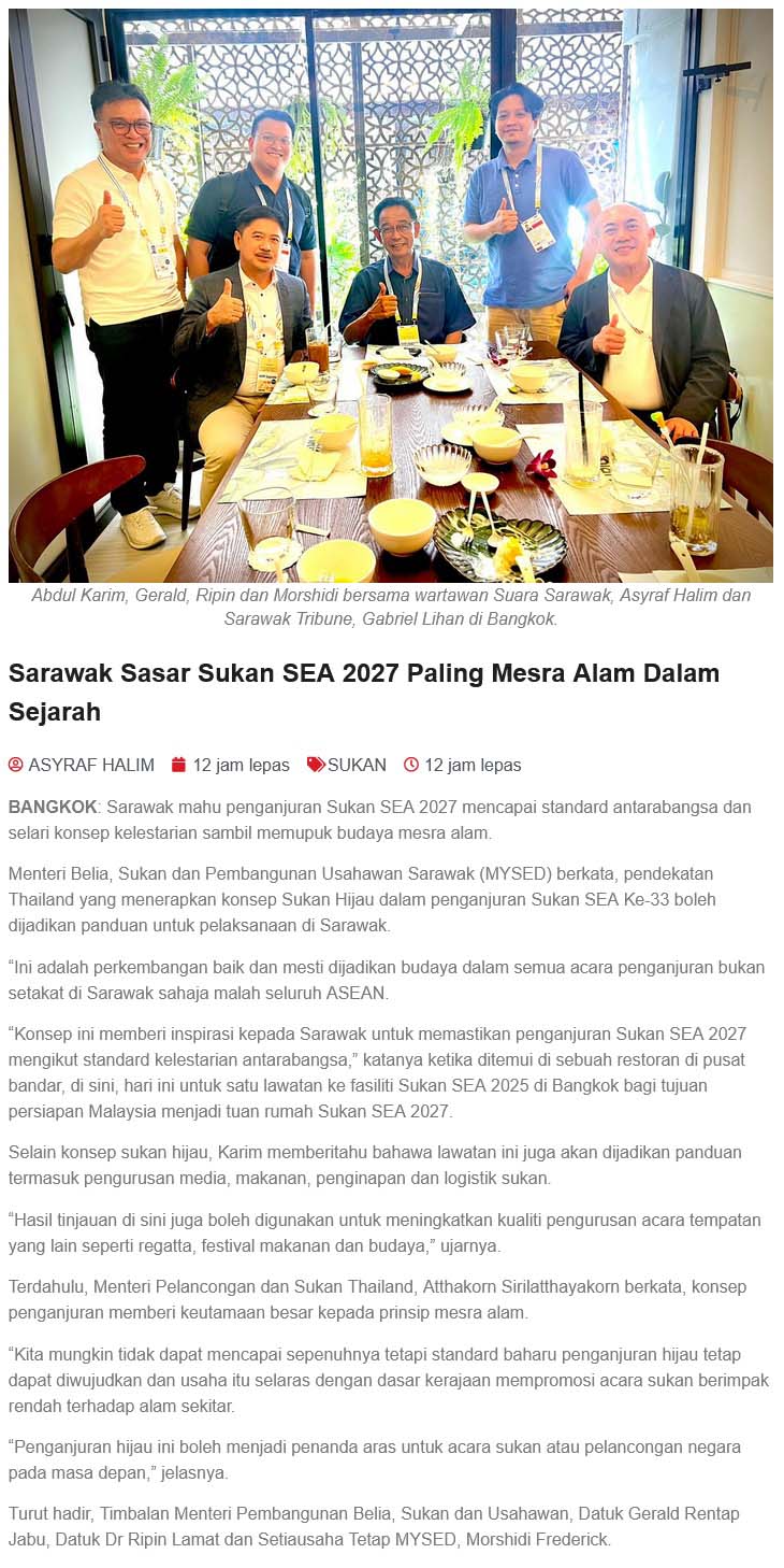 Source of News: https://suarasarawak.my/sarawak-sasar-sukan-sea-2027-paling-mesra-alam-dalam-sejarah/