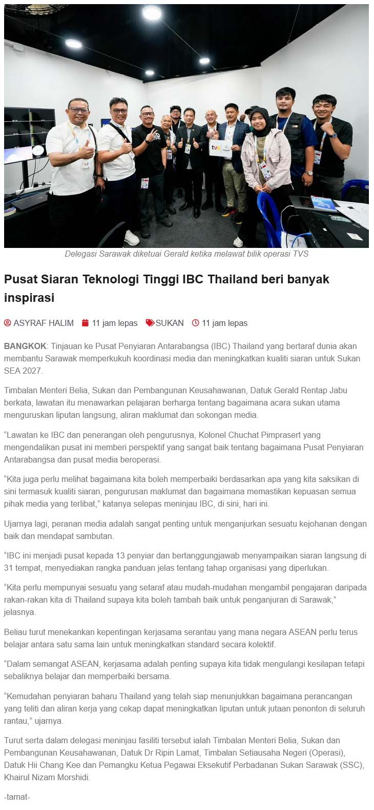 Source of News: https://suarasarawak.my/pusat-siaran-teknologi-tinggi-ibc-thailand-beri-banyak-inspirasi/