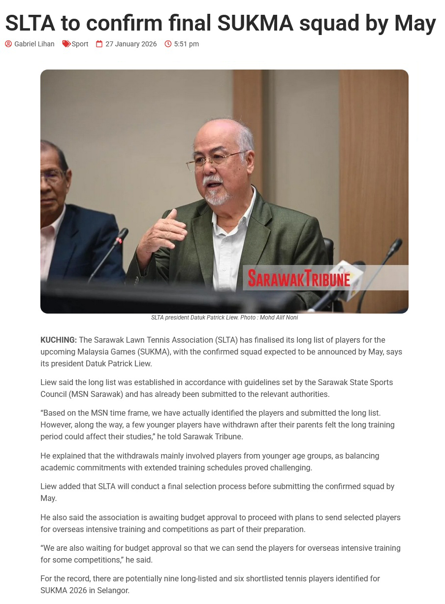 Source of News: https://www.sarawaktribune.com/slta-to-confirm-final-sukma-squad-by-may/
