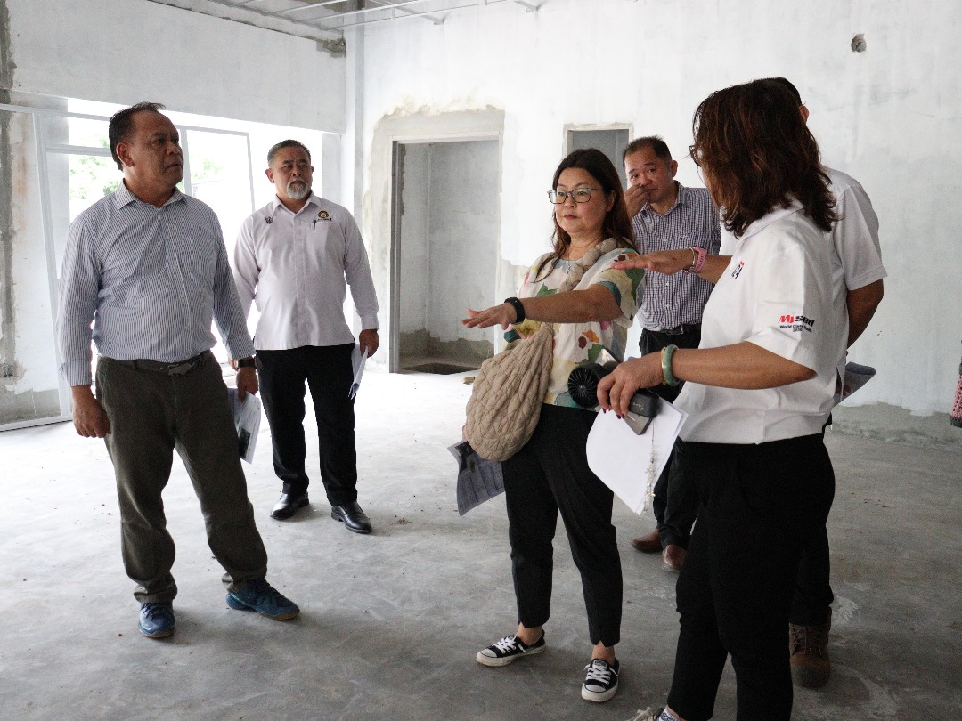 The State Assemblyman (ADUN) for Tasik Biru, Dato Henry Harry Jinep, together with the Bau District Officer, Mr. Eddy anak Nayoi, and the MYSED Head of the Social Facilities Management Section Ms. Molina anak Luhum, visited the construction site of the Bau Sports Arena yesterday.